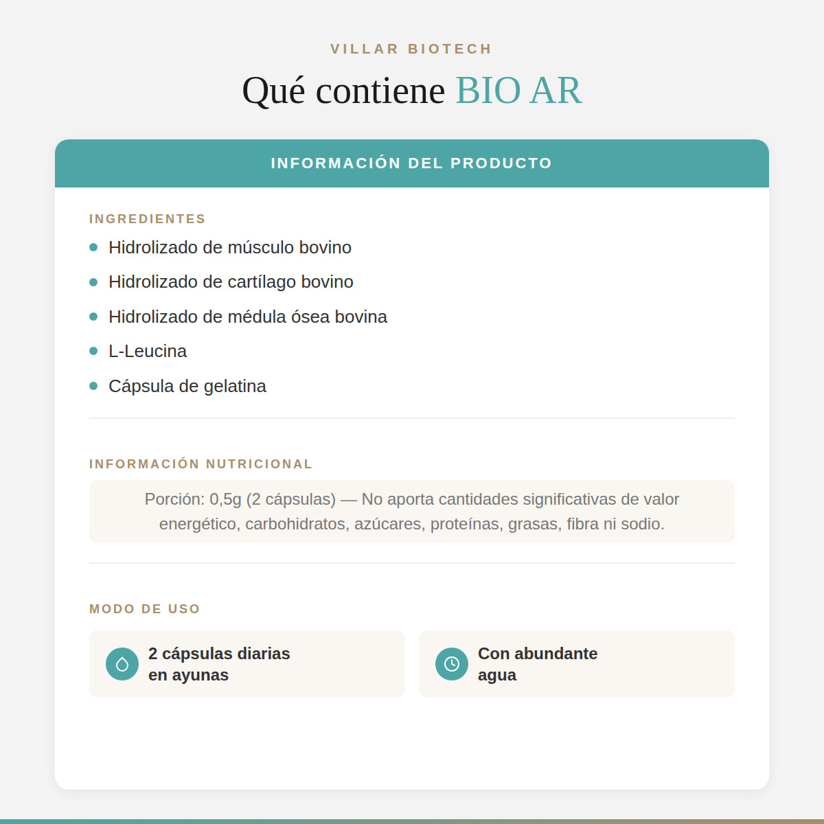 Tomo Bio Art desde hace 3 años haciendo la ingesta tal cual lo indican desde el laboratorio, estoy más que satisfecha con los productos del laboratorio Villar, me ayudaron a recuperar los tendones deshilachados de mi hombro, súper recomendable.